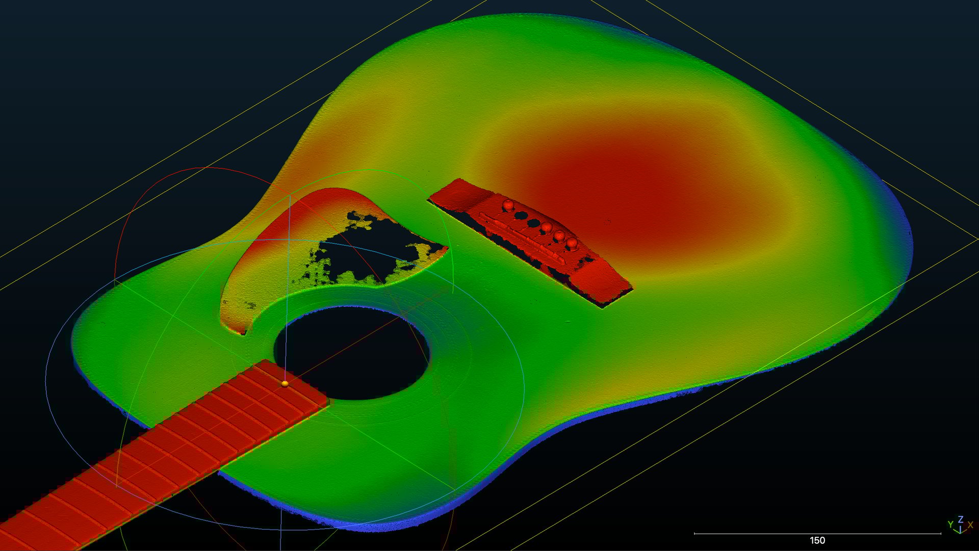 3D scanning technology creates a detailed digital representation of your guitar, capturing every curve, contour, and intricacy with a staggering accuracy of up to 20 microns. This means that whether you’re looking to modify, restore, or create custom parts for your beloved instrument, 3D scans ensure nothing gets lost in translation. Before any actual work begins, our experts can run preliminary tests in 3D software, allowing us to explore different service options tailored specifically for the unique characteristics of each guitar.